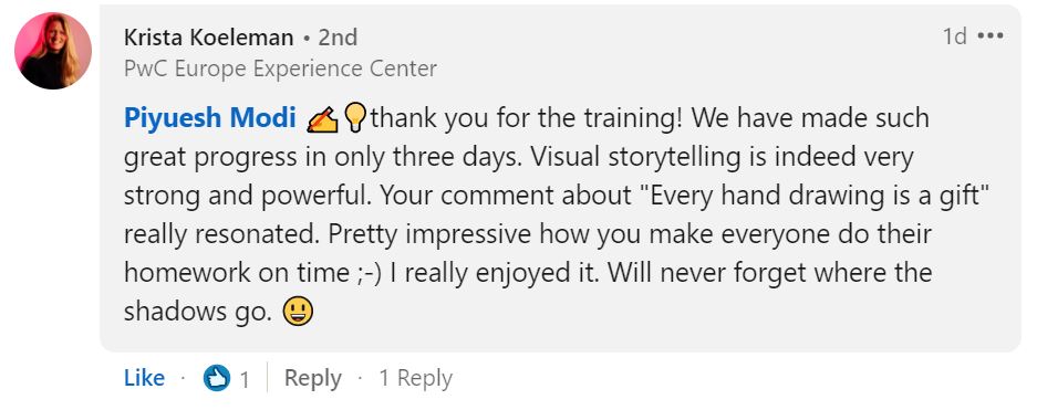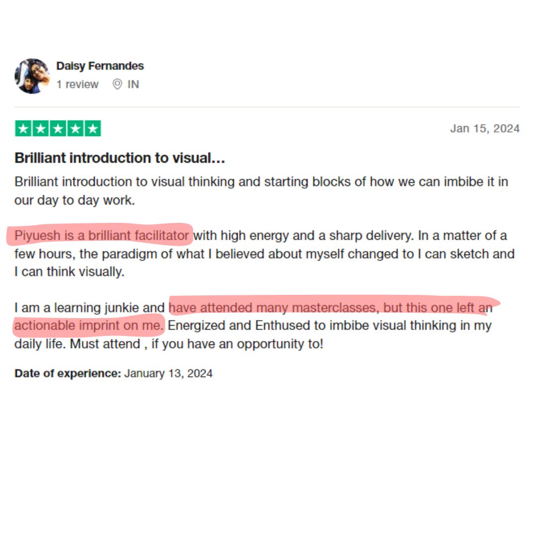 After training to more than 37000 professionals globally, I am excited to empower you with this unique and futuristic skill of Business Sketchnotes